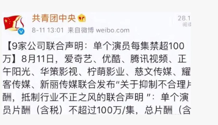 其中明确对艺人的剧集片酬做出了限制和规定。