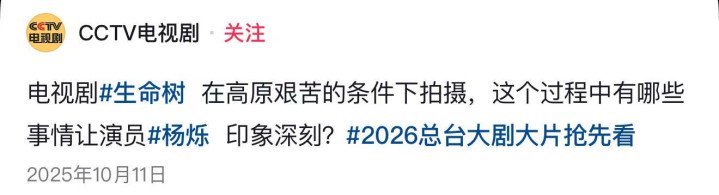 这部由央视亲自下场宣传的电视剧《生命树》已经于1月30号开播。