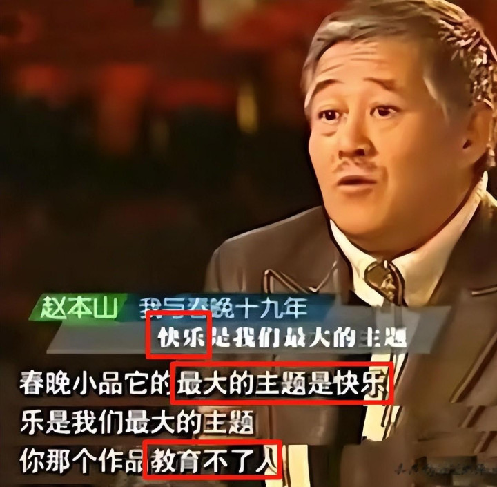 赵本山当年多次说过,小品就不是用来教育人的。“观众一年到头都在被教育,工作有老板教育,生活有媒体教育,大年三十看春晚还得被教育一下,谁还能高兴得起来。”
