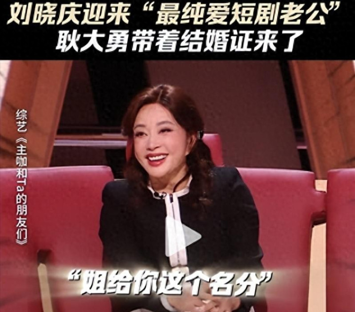 刘晓庆最近又火了。不是靠哪部戏,也不是因为什么争议,是她在一档脱口秀现场,被年轻男演员耿大勇举着一张皱巴巴的“结婚证”喊“老婆”,台下观众嗷嗷叫,她坐在那儿,眼睛弯成月牙,笑纹里全是光。那张证是短剧《萌宝助攻 50岁婚宠》的道具,红纸金字,盖着假章,连日期都写着“2023年某月某日”。可没人当真——除了那份认真劲儿,是真的。