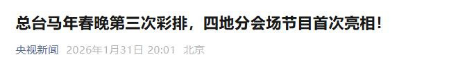 央视新闻|总台马年春晚第三次彩排,四地分会场节目首次亮相!2026