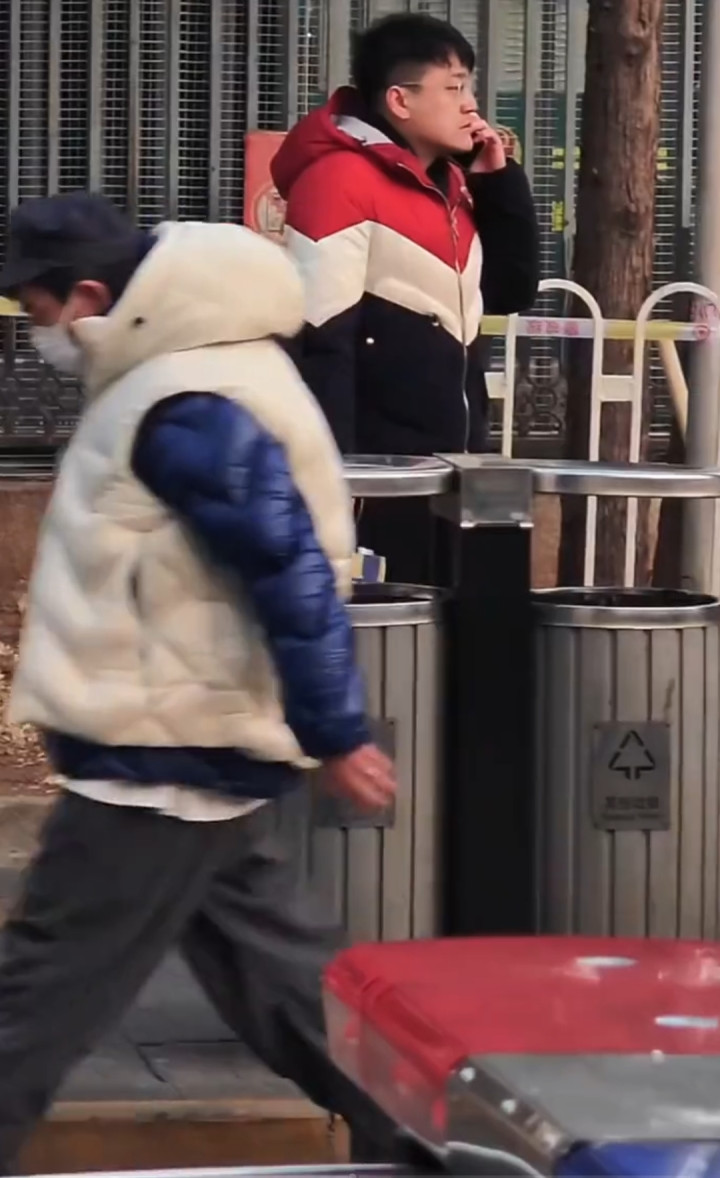咱给你们扒得明明白白:黑色羽绒服外面套羽绒马甲,里面还藏着打底,三层叠穿裹得严严实实,针织帽压到眉毛,口罩遮半张脸,就露俩眼睛透着“不好惹”的劲儿。
