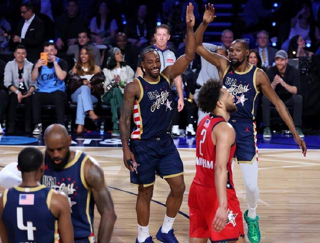 本届全明星杜兰特的上场期间也逾越了森贡,他先后打了三场。在好意思国星队对阵好意思国条纹的比赛中,杜兰特打了10分钟得到5分1板1助攻3抢断1帽。谢天下队对阵好意思国条纹队的比赛中,杜兰特打了12分钟得到7分1板1助攻。在好意思国星队对阵好意思国条纹队的比赛中,杜兰特打了6分钟4中0莫得得分。