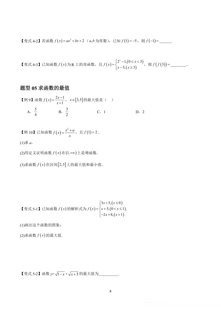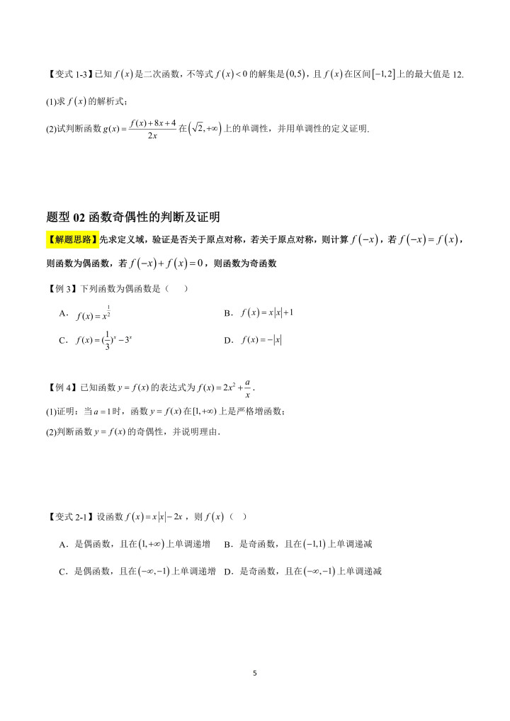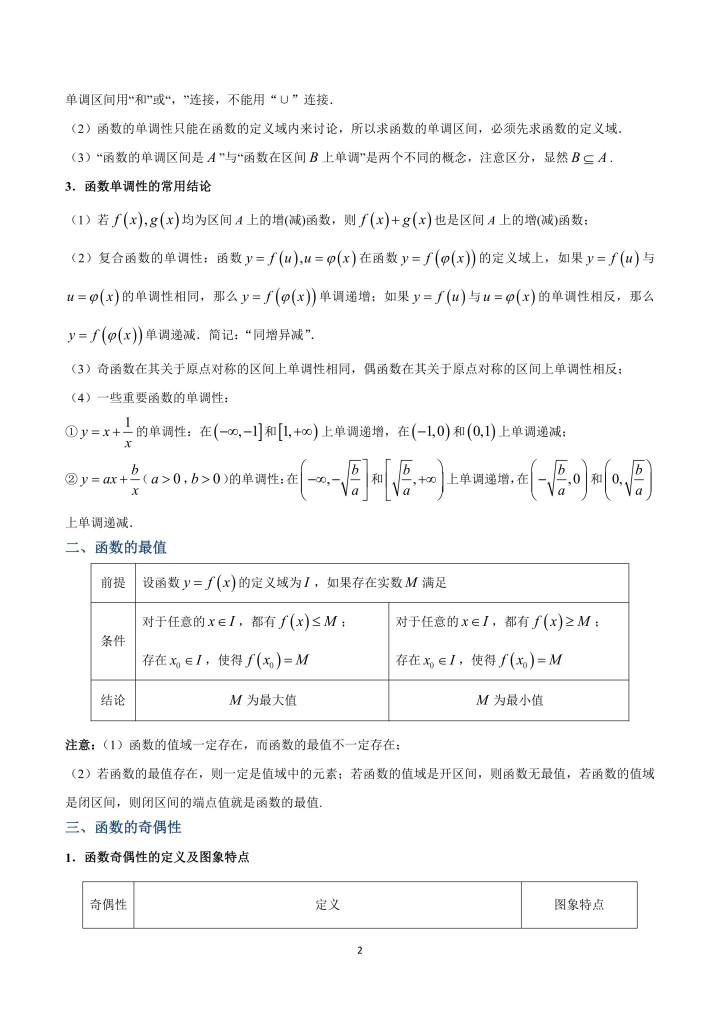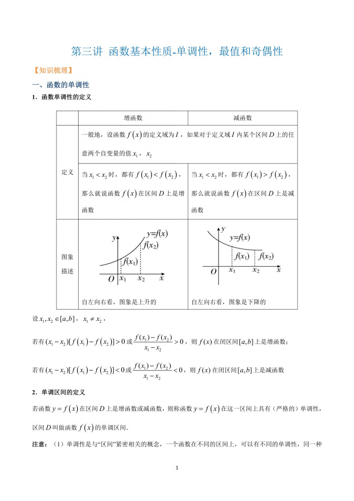 亚搏app官方网站 第三讲 函数基本性质-单调性, 最值和奇偶性(学生版)