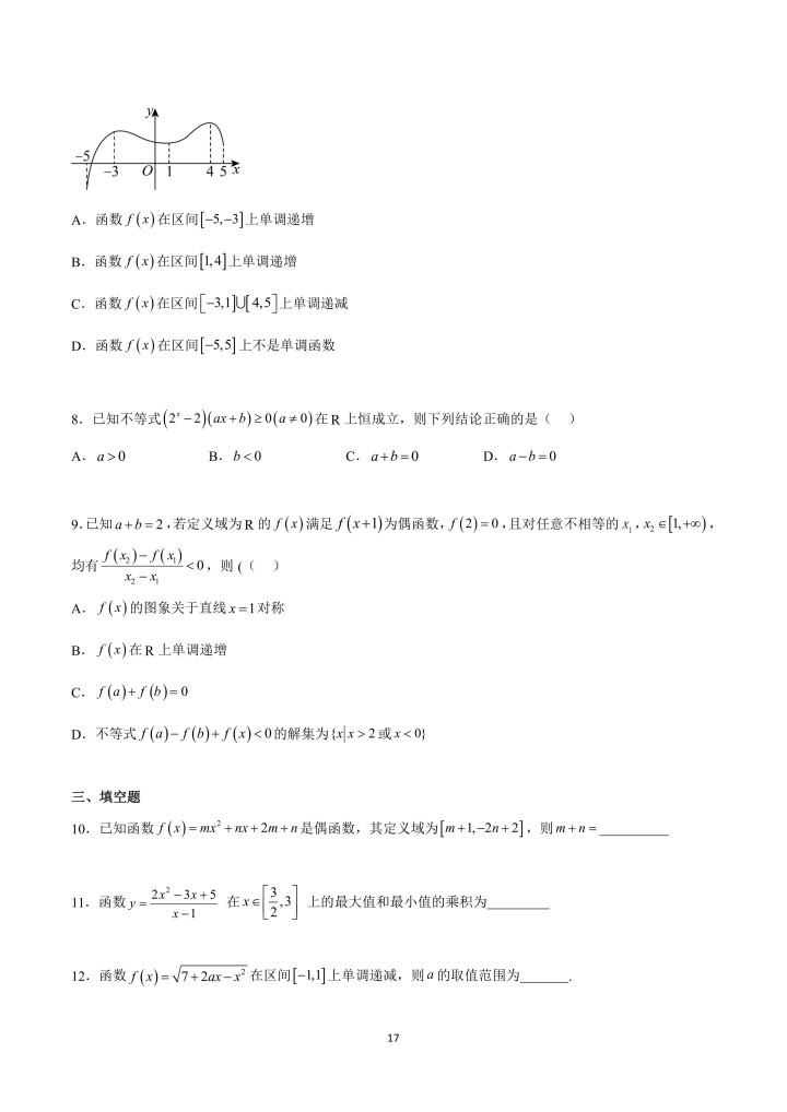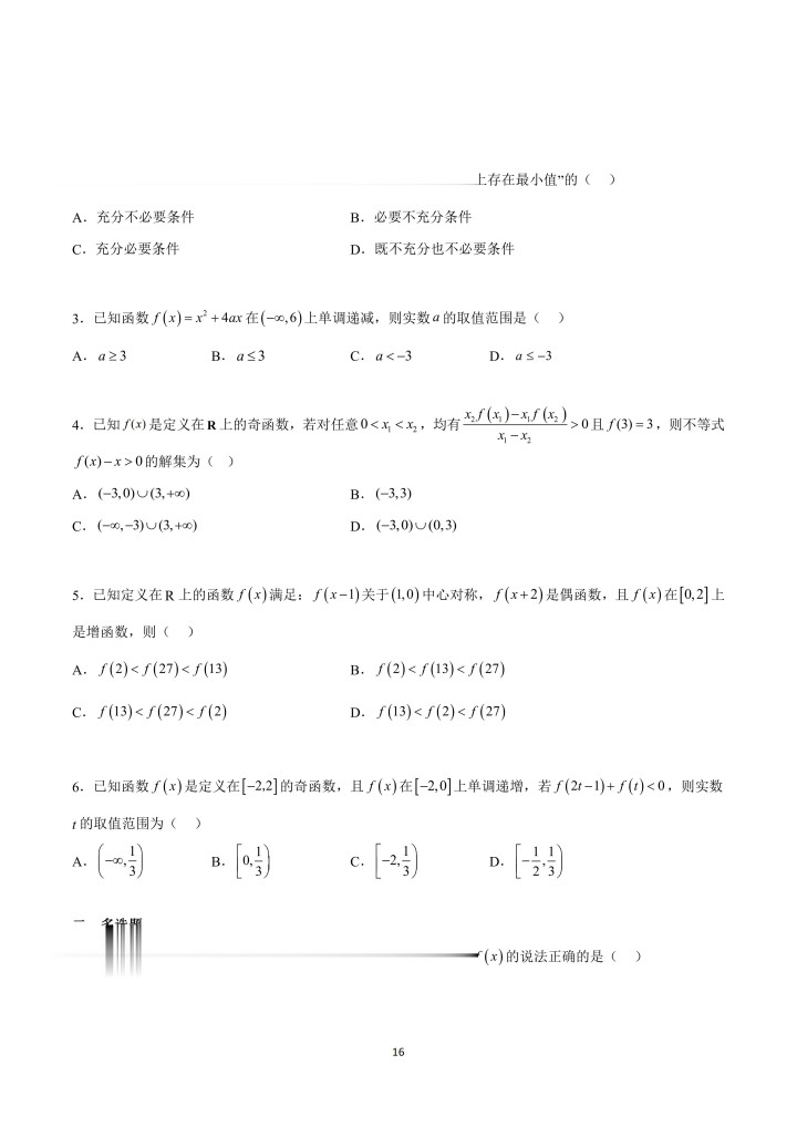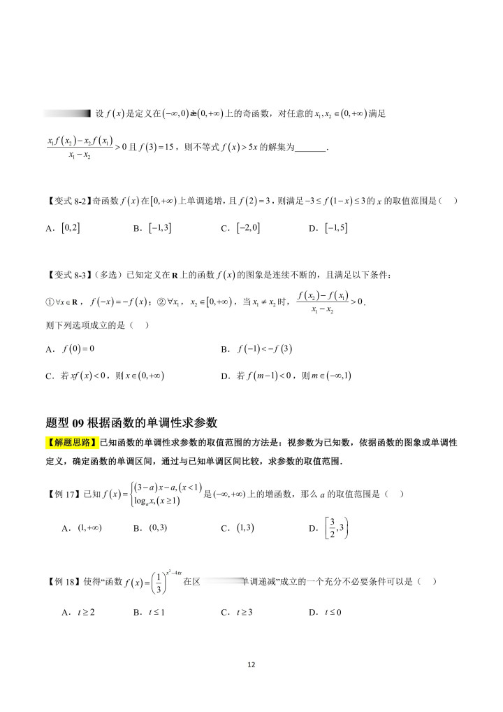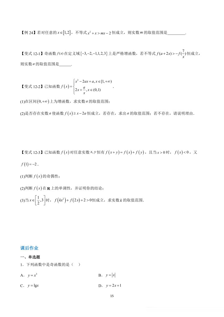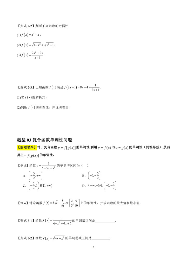 亚搏app官方网站 第三讲 函数基本性质-单调性, 最值和奇偶性(学生版)