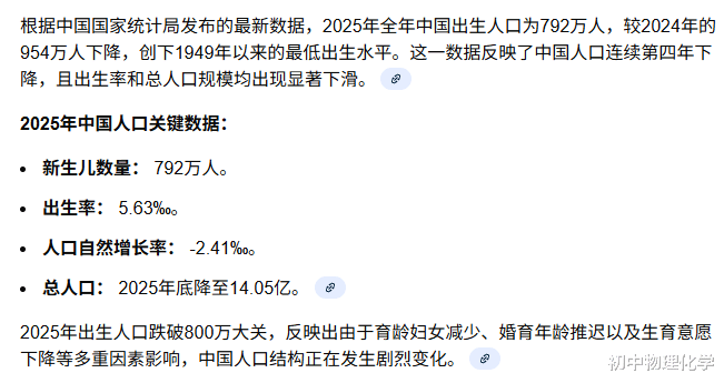 2025年全国新生儿数量792万,创建国以来最低。
