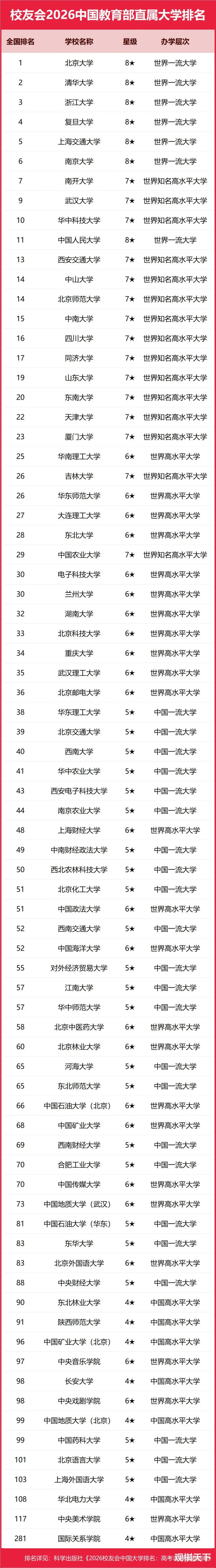 说穿了, 教育部直属这个名头, 它本身就算是一种筛选, 能进这个圈的, 一种是综合本事确实硬, 另一种是在特定方向上做到了顶尖, 不会有滥竽充数的角色。
