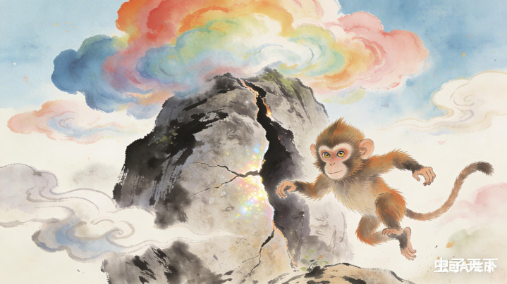 那年春日,花果山突降七彩祥云,仙石“咔嚓”一声裂开,蹦出个毛脸雷公嘴的石猴。