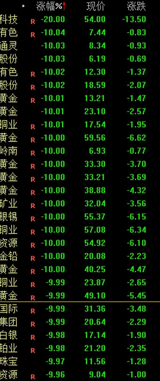 周末还有人在讲上涨逻辑没变……现在,逻辑确实没变,高位大套发完了……黄金概念股自然是跌停一片: