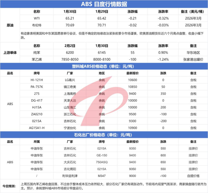 亚搏app下载 塑料行情2.2|燃爆塑市! ABS整体上调! 狂涨650元! 全面飘红