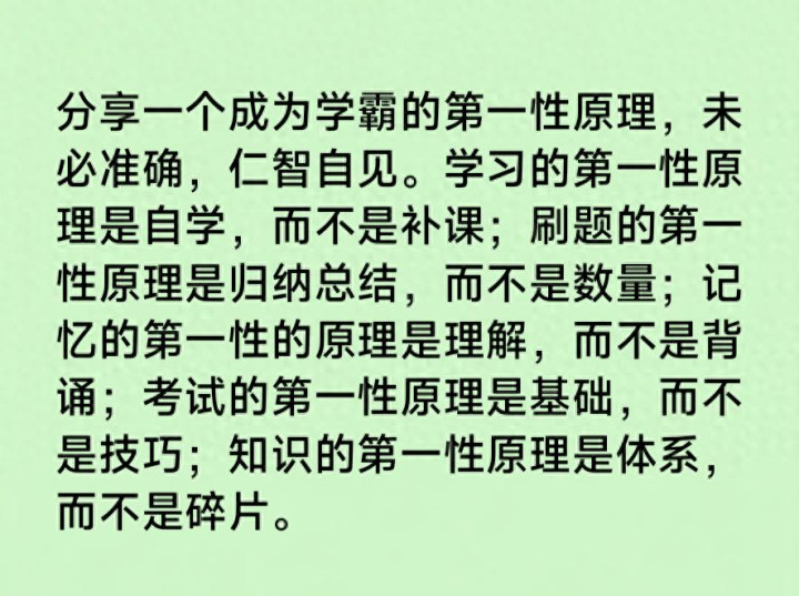 记忆的第一性原理是理解,而不是背诵;知识的第一性原理是体系,而不是碎片。