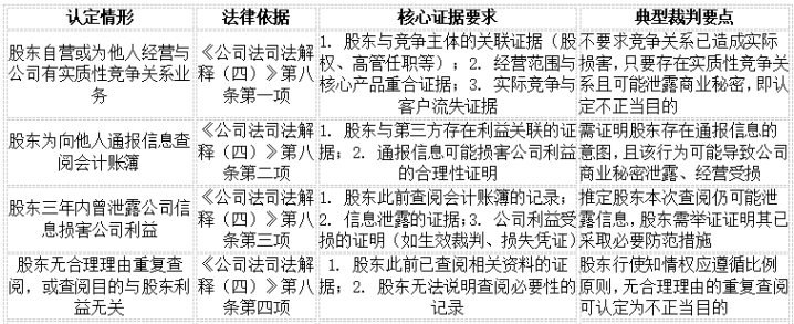 (三)法院认定“不正当目的”的典型情形与裁判要点汇总表