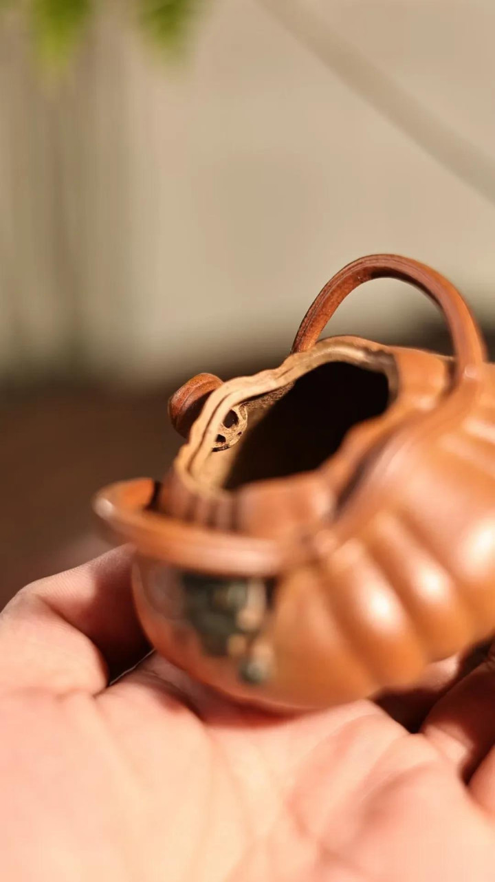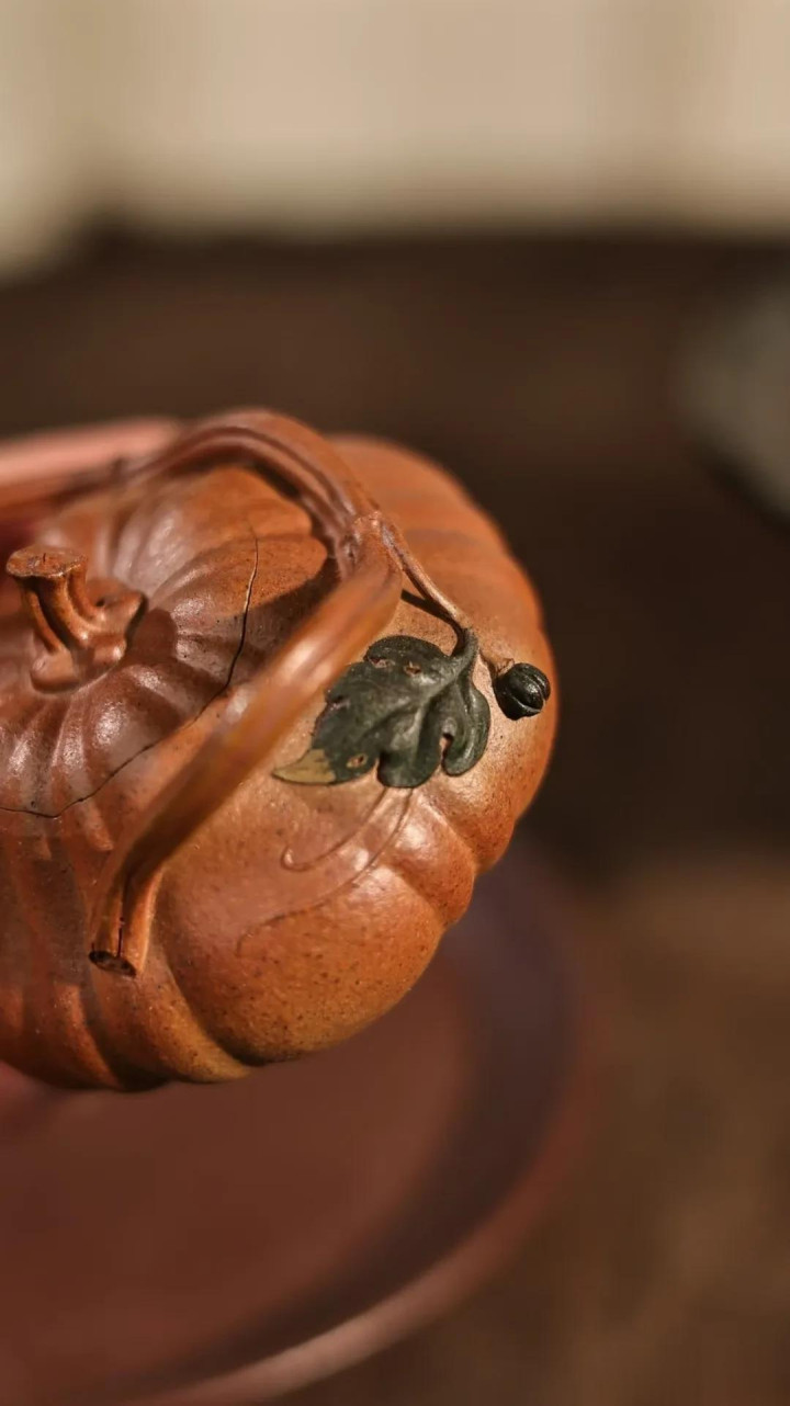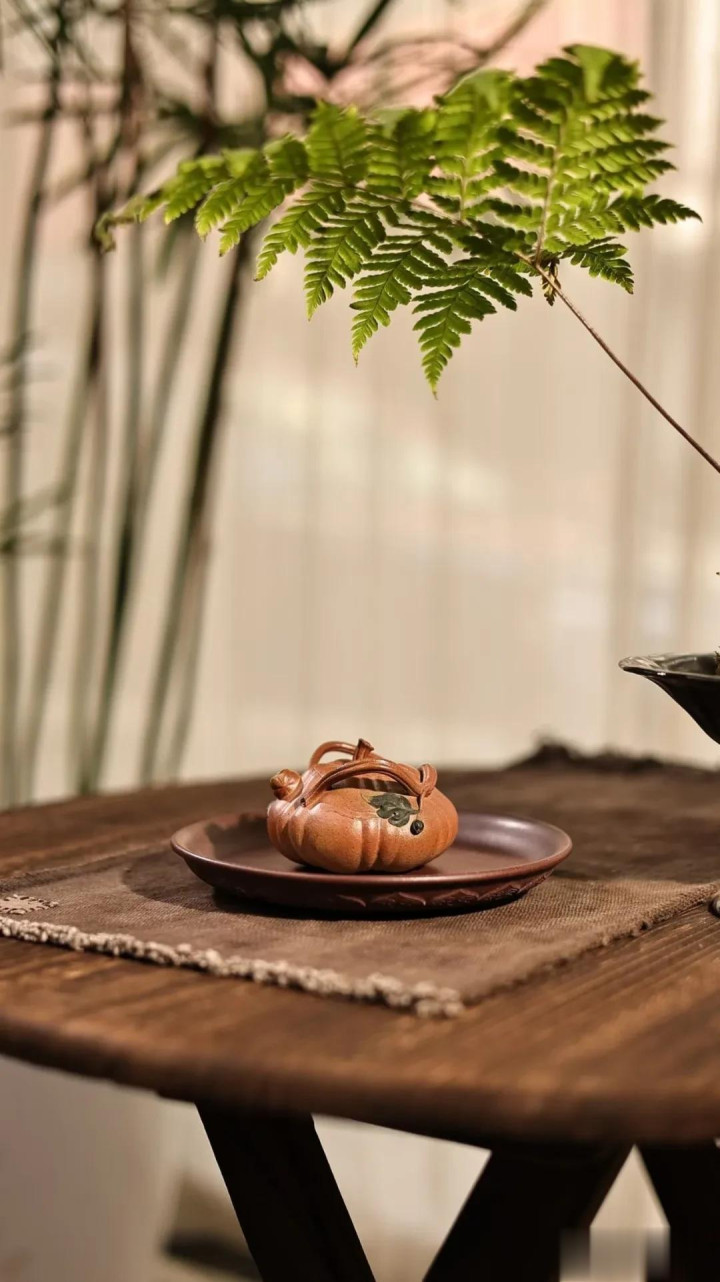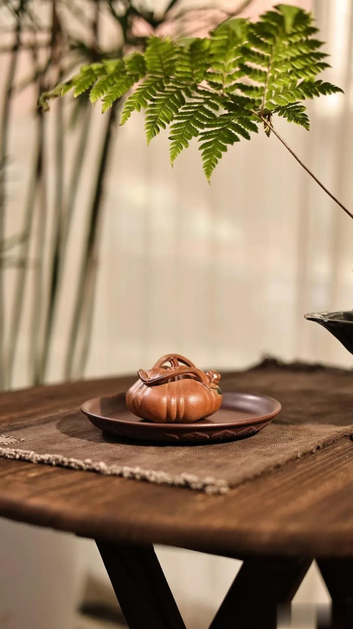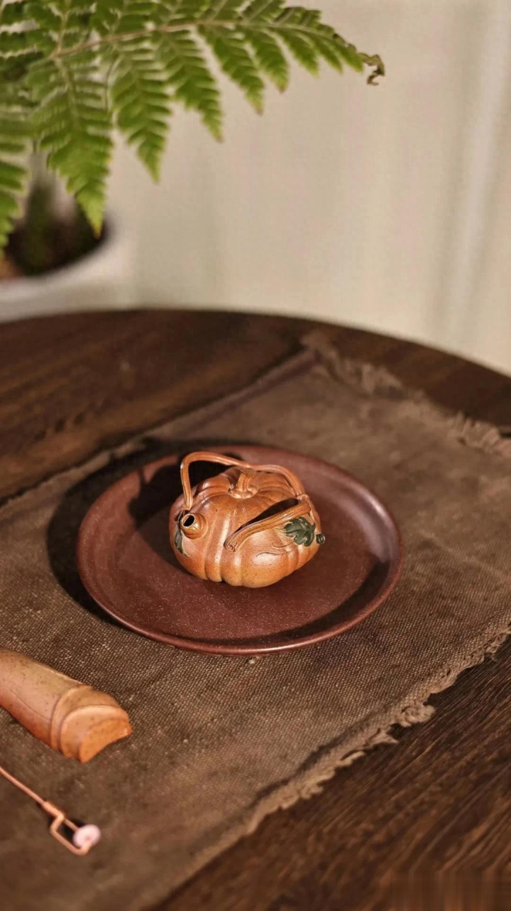 过年时,我用这把壶为长辈奉茶。姑姑接过茶杯,手指轻轻摩挲壶身:“真像我们小时候地里种的南瓜。”一句话,唤醒了整个田野的记忆。器物之所以美,不仅在于形态,更在于它瞬间打通了人与土地、与季节、与亲情的连结。这把南瓜壶盛的不只是茶汤,还有对丰收的祈愿,对团圆的珍重,对朴素生活的敬意。