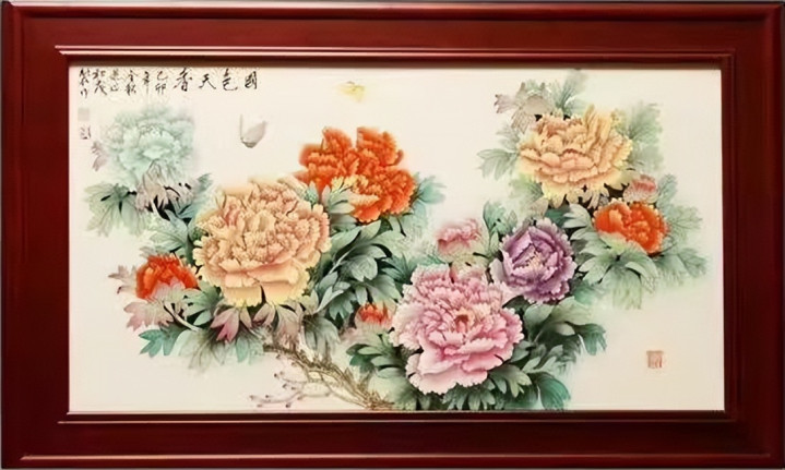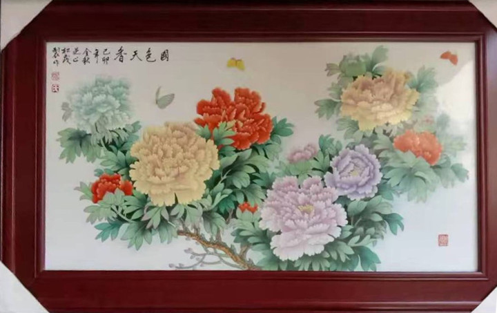 牡丹雍容绚丽,色彩雅致鲜活,蝴蝶灵动翩跹,尽显富贵祥和气韵,瓷绘精妙,堪称传世珍品