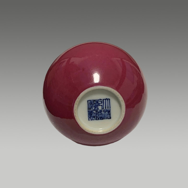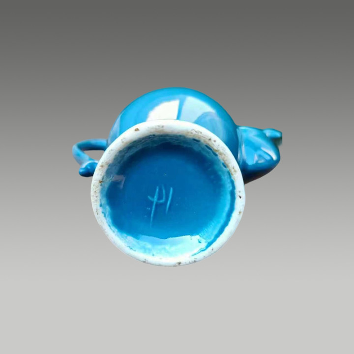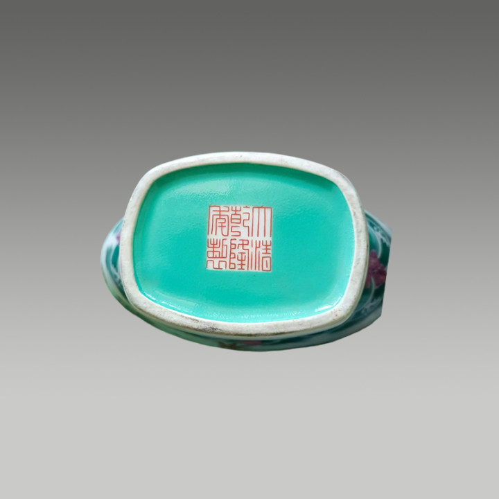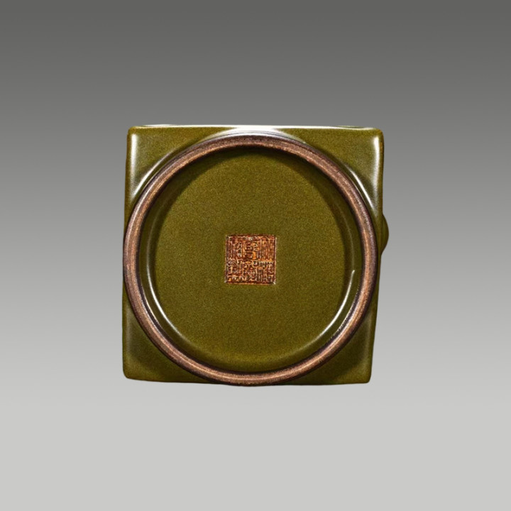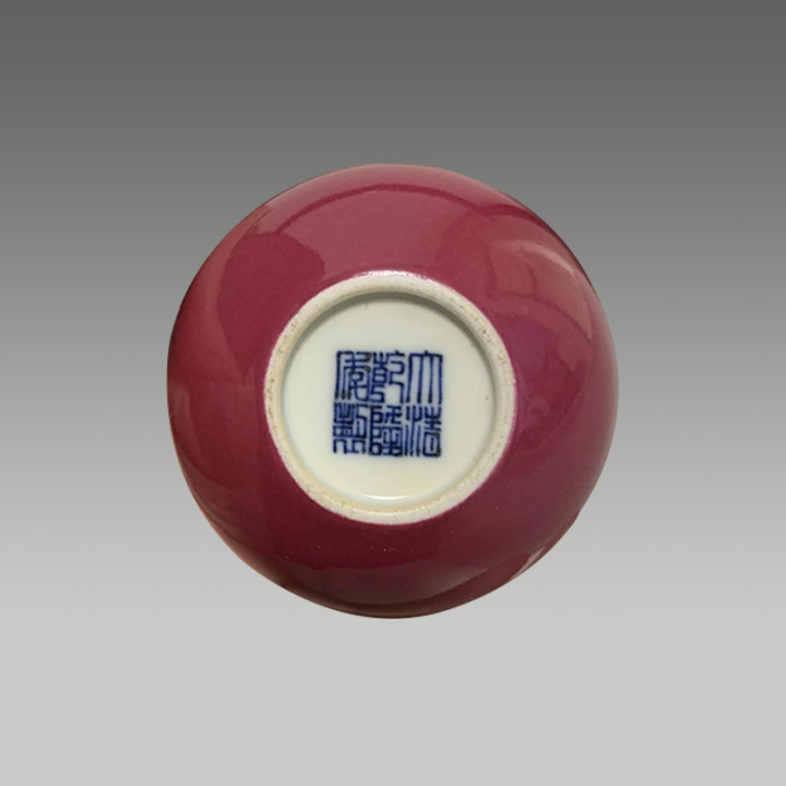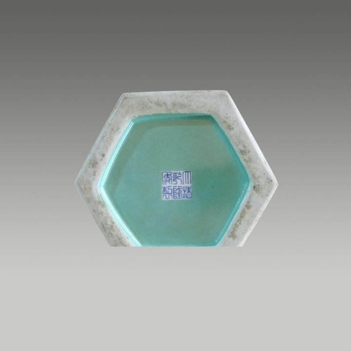 底刻六字三行篆书款。形态优美,造型具有典雅风格。是单色釉瓷器里精美佳品。值得收藏