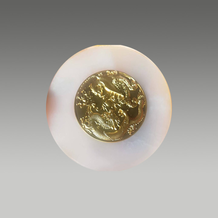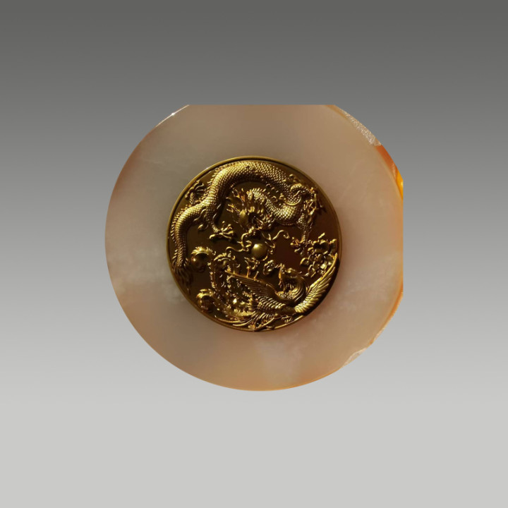 这款金镶玉摆件以温润羊脂玉为底,嵌以浮雕金龙,金凤,工艺精湛,兼具美学与收藏价值