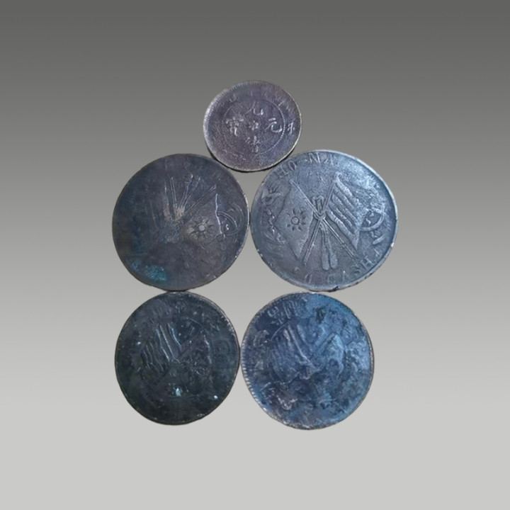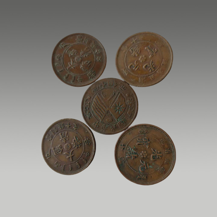 此组钱币成色匀整,币面清晰;钱币图案繁复精美,保存完好,是金融史的珍贵实物,兼具历史价值与收藏价值