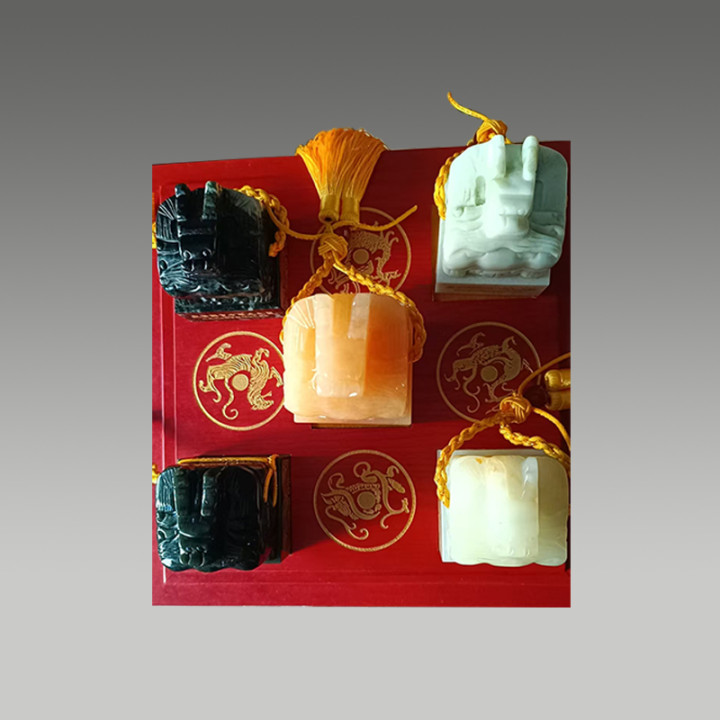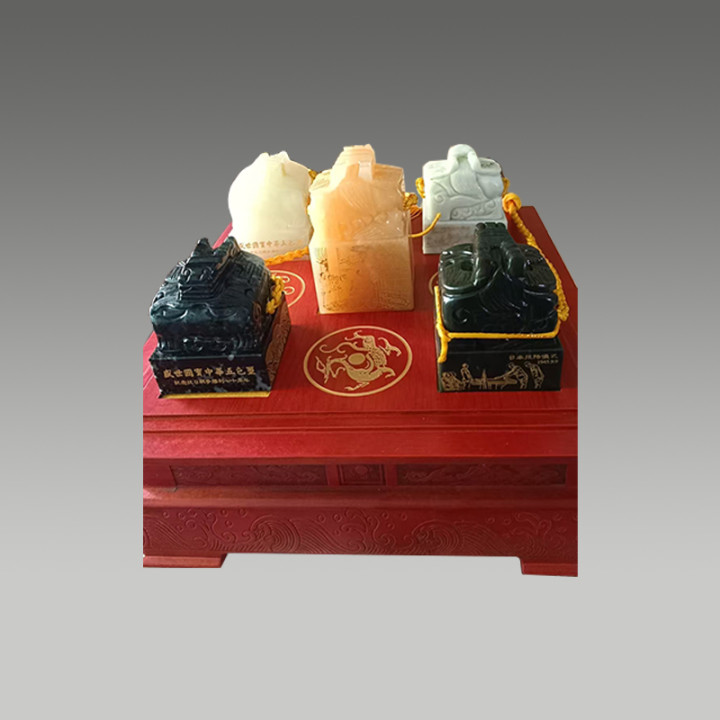 这套五色宝玺材质莹润,雕工精细,融工艺价值与纪念意义于一体,是极具收藏潜力的艺术珍品