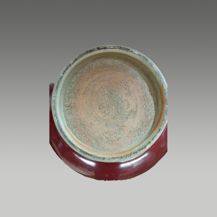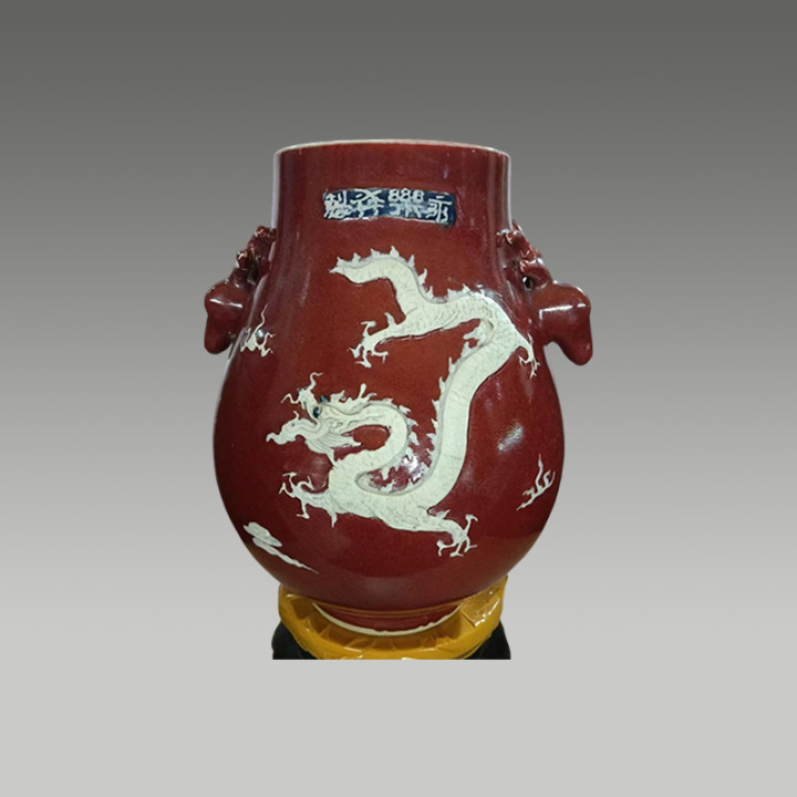 这件藏品霁红釉凝厚莹润,宛若赤霞落瓶身,留白堆塑游龙矫健灵动,尽显官窑传世风华,极具收藏价值