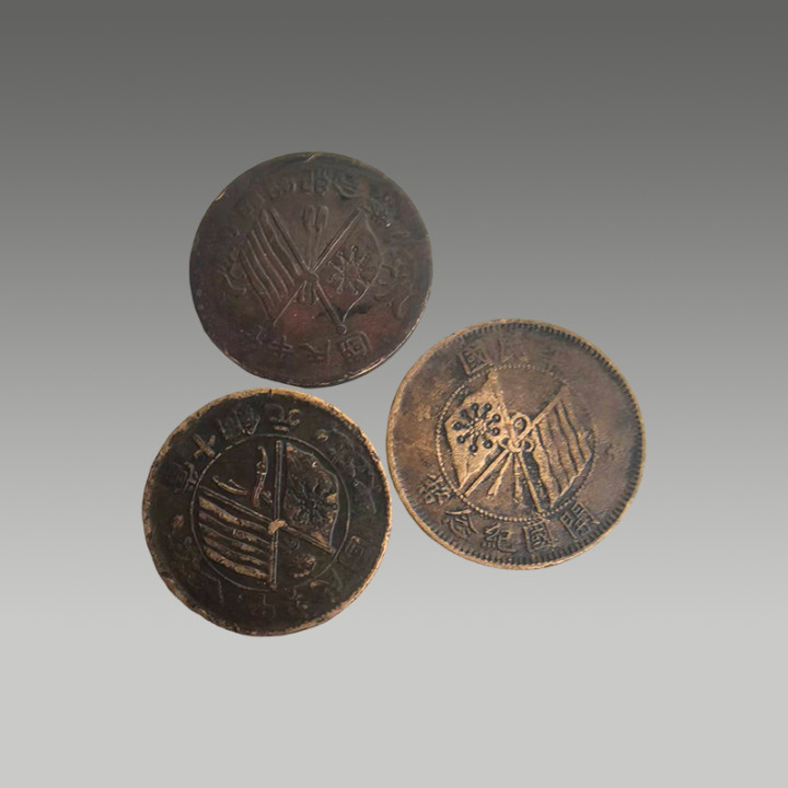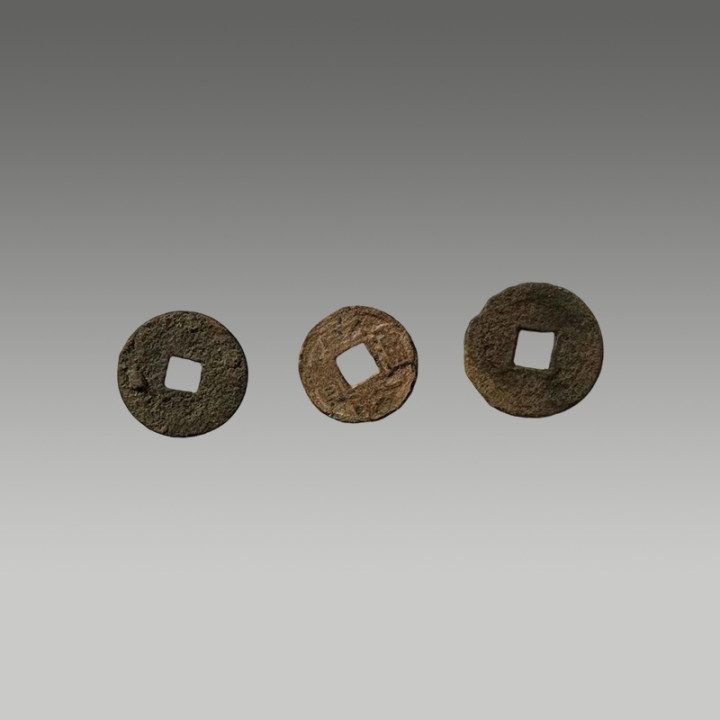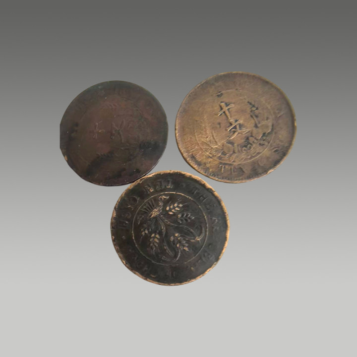 这三枚古钱币制造工艺精湛,币面图案清晰,锈色及包浆自然,因存世量有限,具有一定的市场价值