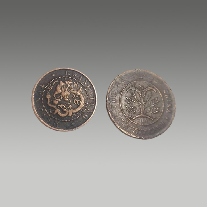 这两枚古钱币制造工艺精湛,币面图案清晰,锈色及包浆自然,因存世量有限,具有一定的市场价值