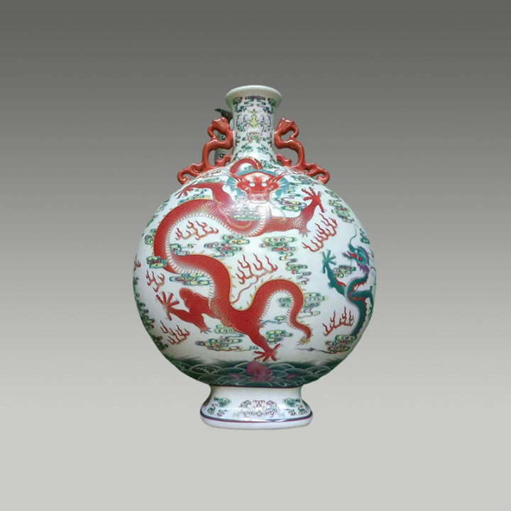 此瓶以五彩绘龙纹,构图饱满,色彩明丽,工艺精湛,凤凰彩票app兼具装饰性与收藏价值,是一件极具观赏性的艺术瓷