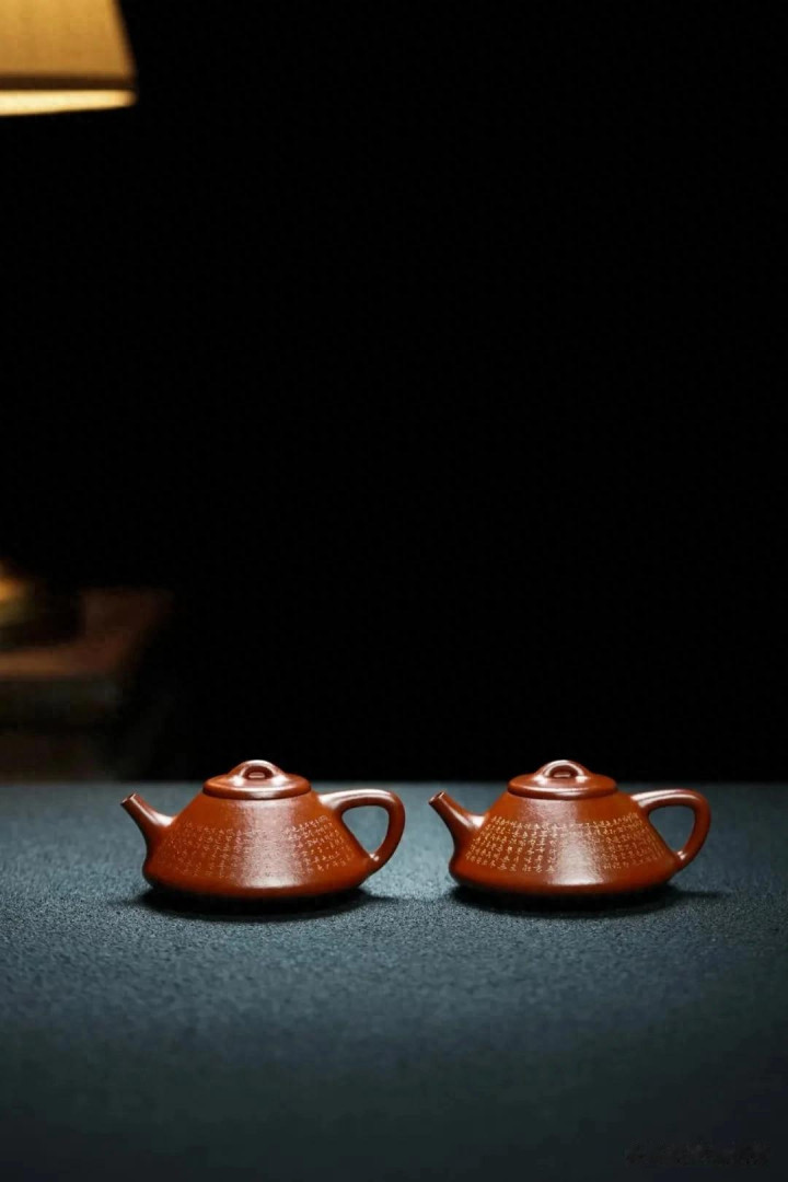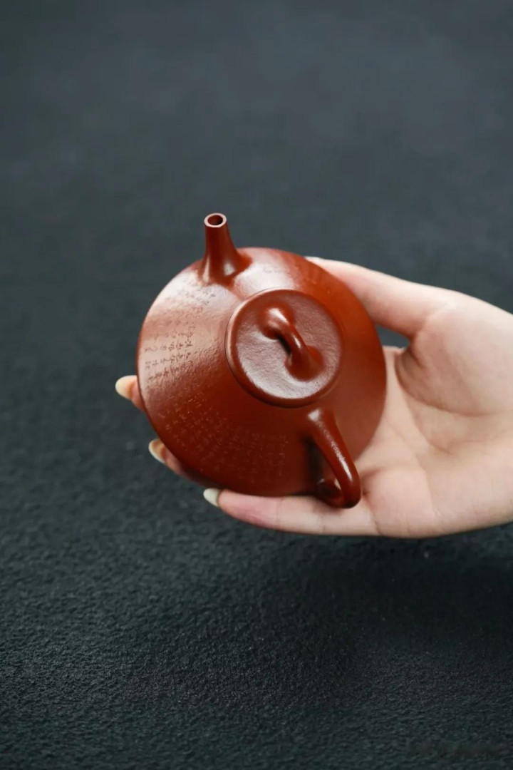 晨光微露时,茶席已静待。当沸水注入这把130CC的原矿粗砂朱泥壶身,热气蒸腾而上,壶壁上精工微刻的《般若心经》便仿佛在氤氲中隐隐浮现。这不是陈列柜里的藏品,而是一件被体温与茶汤滋养着的日常伴侣。紫砂之美,终须在持握、倾注、摩挲的往复间,才真正完满。