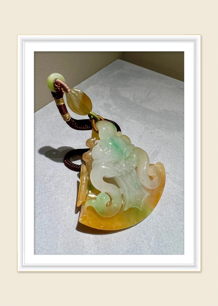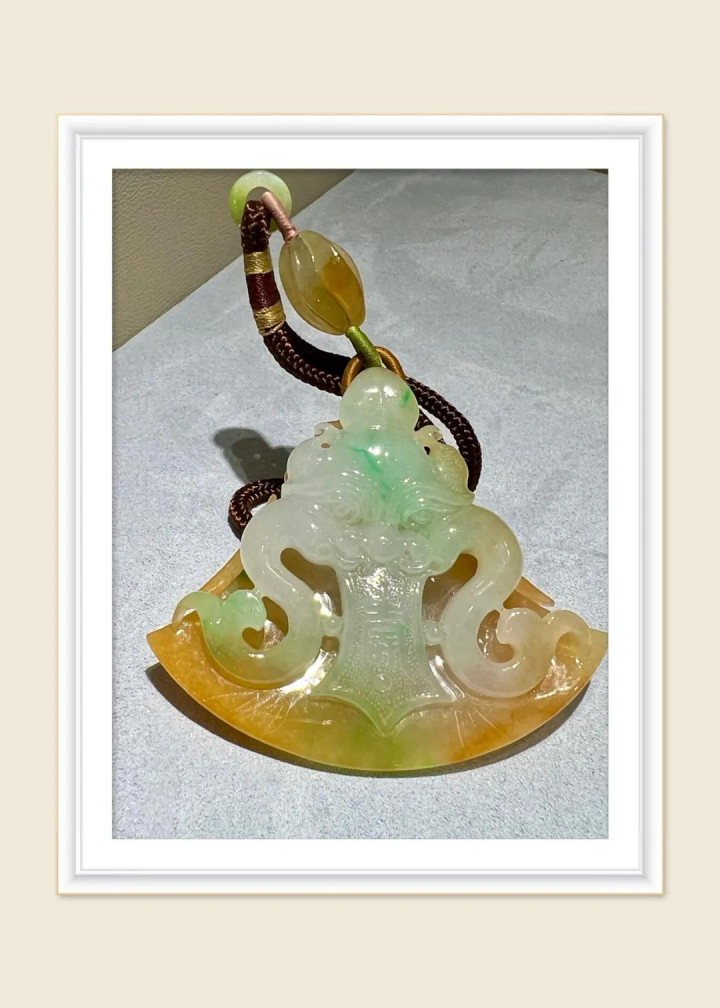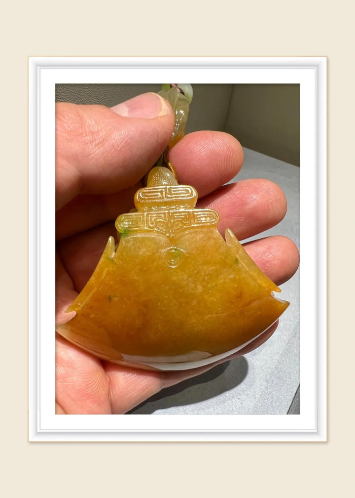 若你细看一块上好的黄夹绿,会发现它的美不止于色彩。种水好的料子,黄如蜜蜡温润,绿似春水初生,在光线下流转着通透的灵气;雕工精妙的作品,则借色布局,让黄与绿在刀工下化作山川云霞,或成花鸟虫鱼。佩戴它,不仅是戴一块玉,更是将一份包容的智慧戴在身上——如同东方哲学中阴阳相生的隐喻,在冲突与融合间,找到最动人的平衡。