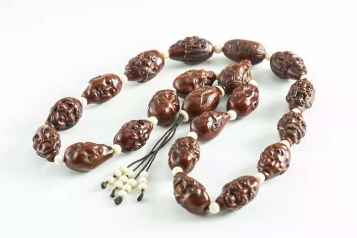 2005年,北京翰海春拍上,一件108粒的清代核雕先贤人物珠串以134.2万元成交,创下了核雕拍卖的纪录。