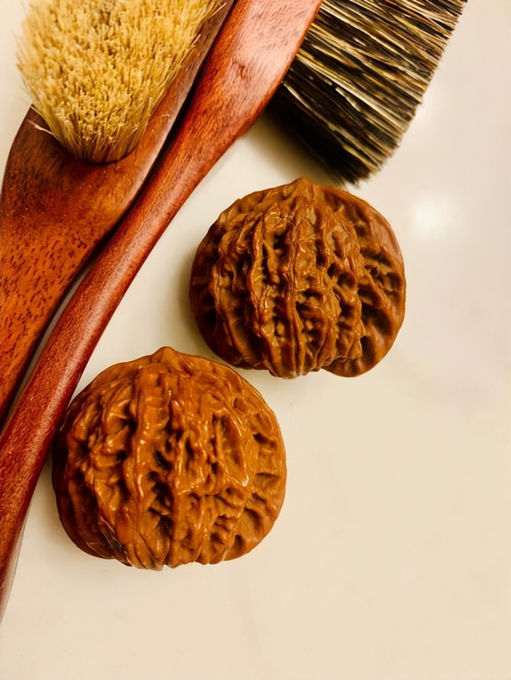 文玩核桃“收尾”:核桃盘完后,用软毛刷扫去缝隙里的残渣,比用手抠干净,还不伤皮质。