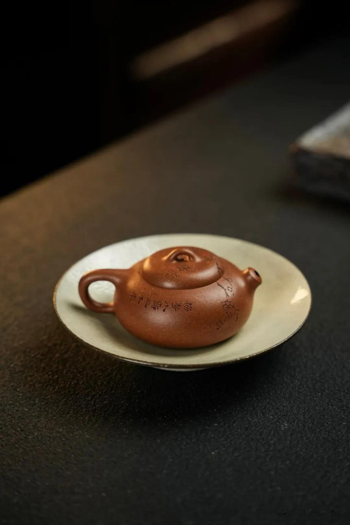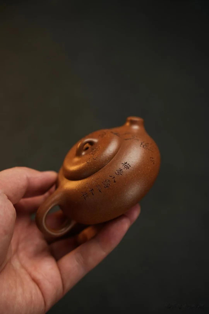 它有个雅名,唤作“小禅瓢”。形制是仿那石瓢的骨架,却去了棱角,多了圆融。壶身线条从流到把,划过一个完满的弧度,像一句未曾说出口的偈语。你将它托在手里,或三指轻捏,是恰到好处的妥帖。所谓“合适把玩”,便是这般——它不是供在博古架上的器,是等着你手温去焐热、茶汤去滋养的、活的物件。