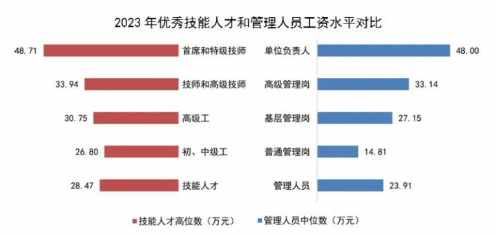 从上海人社披露的数据看,各等级技能人才的工资高位数已经超过了专业技术人员和管理人员中位数。