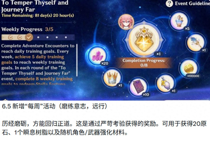 就在刚刚,有音讯称砺行修远会在6.5版块新增一些奖励,奖励包括20原石,和1个移时树脂以及就地脚色/刀兵强化材料。也便是说每周多了20原石,领完一个脚色命座之后,也便是8周,之后关闭,统共得回一抽。 天然,如果能多来点造就书和摩拉就更好了,因为最近有不少玩家反映拉脚色扫数不够用。
