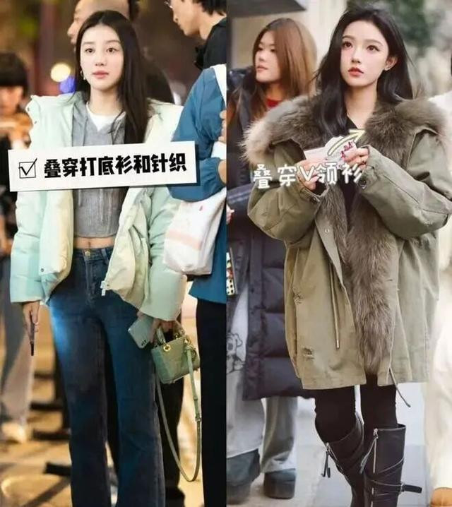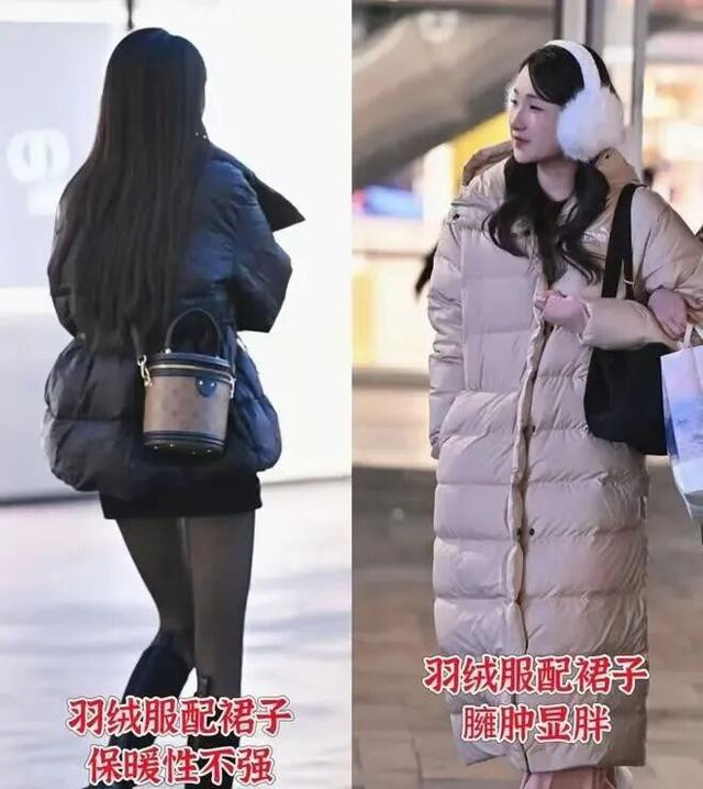 先放弃用裙子配羽绒服的想法,尤其是那种不长不短、卡在膝盖附近的裙子。羽绒服本身就蓬松,配上同样没什么骨感的裙子,整个人就像个没支棱起来的软体动物,重心往下坠,特别显矮。更别说寒风一吹,那叫一个酸爽,美丽冻人不是这么个冻法。