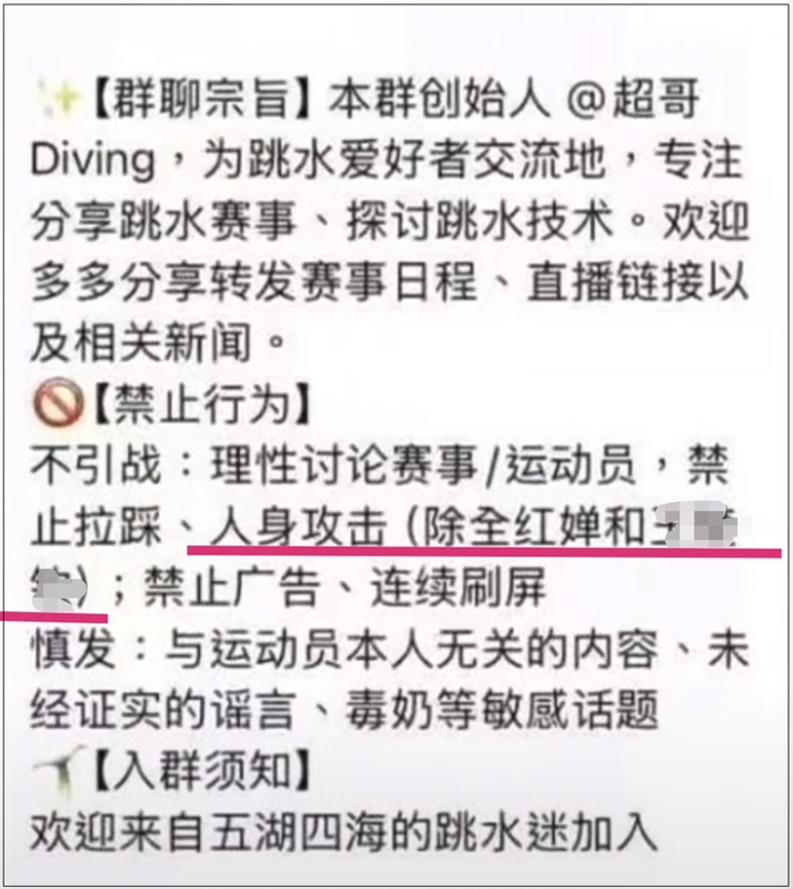 被媒体曝光的群聊公告中,明确指令面向全红婵的东说念主身挫折