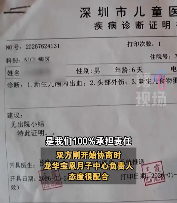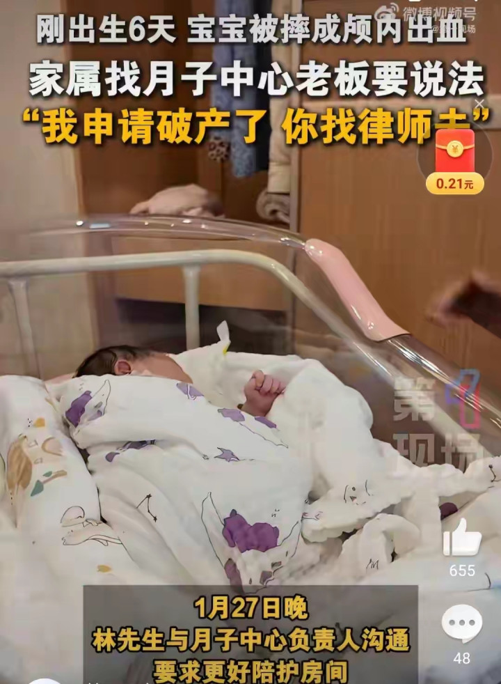 广东有个老林,新添孙子花了大钱住月子中心,图个安心。结果孩子才出生第六天,月嫂抱着时摔了,CT显示颅内出血。老林一家差点没晕过去,这么小的孩子怎么扛得住?医生说可能有后遗症,但具体咋样都说不准,一家子急得像热锅上的蚂蚁。