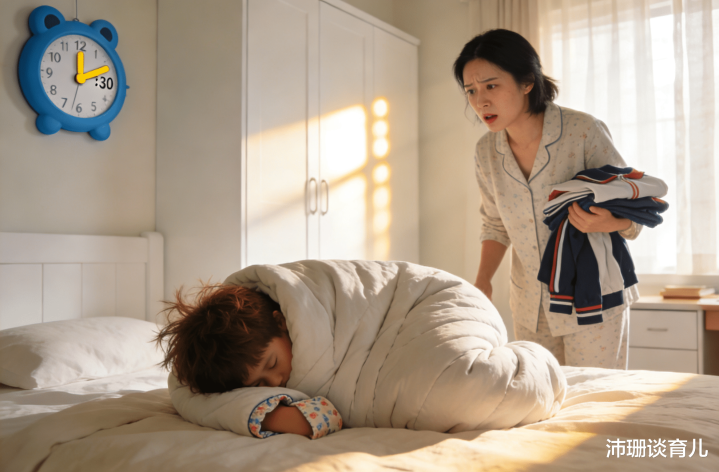 假期的早晨,亲子关系好像总是最紧张的,你这边心急火燎,想着早餐凉了、计划泡汤了。孩子却像被床封印了,任你从温柔呼唤升级到河东狮吼,他也不动,最后往往以你的崩溃和孩子的眼泪收场。