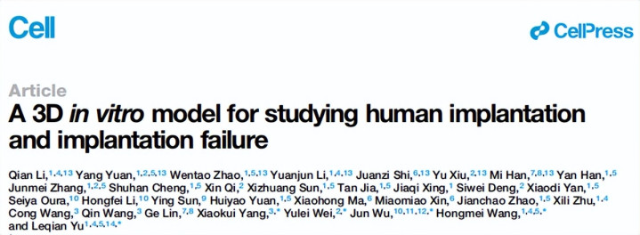 相关论文以《用于研究人类胚胎着床及着床失败的三维体外模型》(A3Dinvitromodelforstudyinghumanimplantationandimplantationfailure)为题发表在Cell[1]。