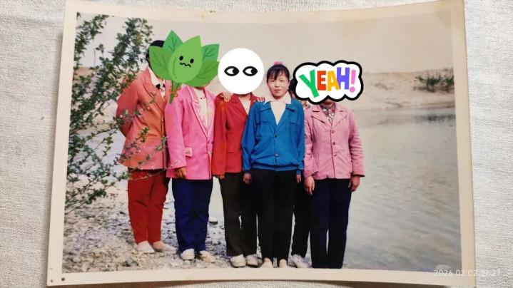 这张上面我穿的蓝色衣服,还是我哥哥的。