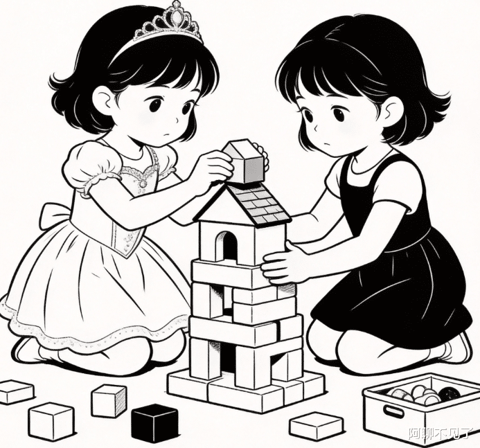 有一次,婆婆看到女儿把积木分给邻居家的小朋友,还大方地说:“这个城堡很好玩,我们一起搭吧。”