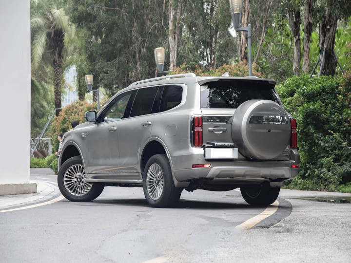 再来看车身侧面部分,车身侧面依旧保合手着坦克500经典的硬朗造型,肌肉感澈底的腰线从前翼子板连气儿至车尾,搭配大尺寸厚壁轮胎与较高的离地罅隙,将硬派SUV的气场拉满。车身尺寸为5078mm×1934mm×1905mm,轴距达2850mm,修长的车身与宽大的轮距,既保证了里面空间的浩荡,也为越野行驶提供了雅致的平定性。顶配车型专属的"敦煌绿"车漆,低调中透着高档感,进一步升迁了车型的辨识度。