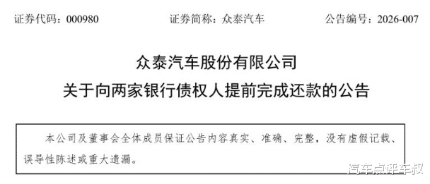 令人意外的是,众泰不仅如期履约,还提前完成了还款。今年1月26日,众泰发布公告称已提前还清上述债务,清偿金额约3.84亿元。