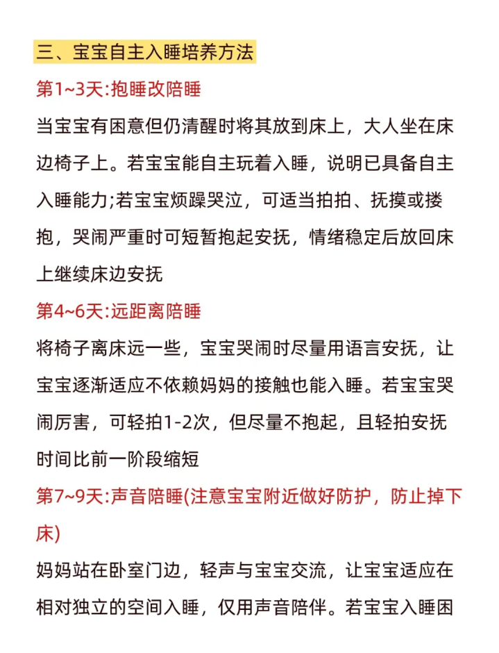 如果希望慢慢培养宝宝自主入睡的能力,可以试试循序渐进的方法。一开始,可以在宝宝有困意但还清醒时,把他放在小床上,大人坐在旁边陪伴。如果宝宝哭了,可以轻轻拍拍他,或者短暂抱一抱安抚。然后慢慢尝试拉开一点距离,用声音陪伴,最后让宝宝习惯在安全、熟悉的环境里自己睡着。这个过程需要耐心,一般坚持一到两周,很多宝宝就能给你惊喜。
